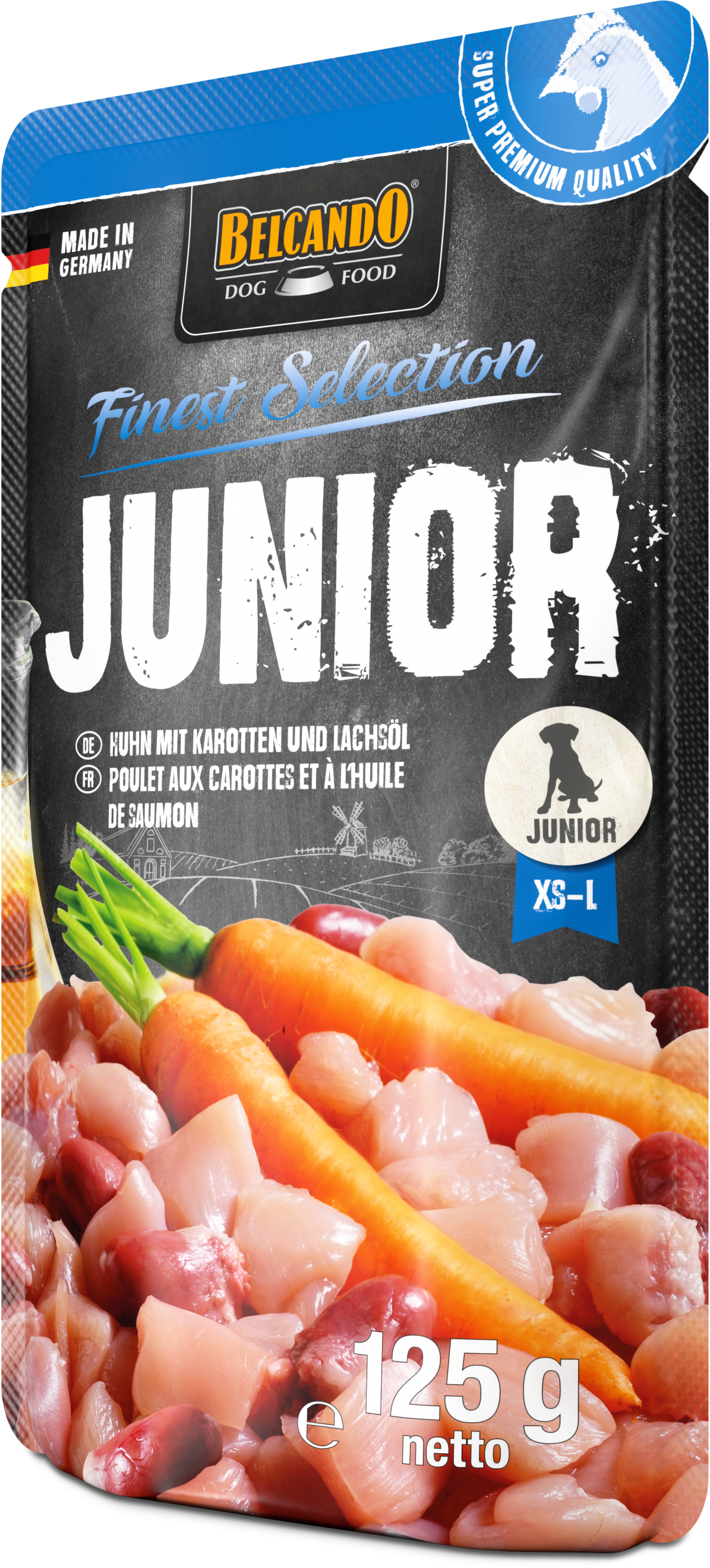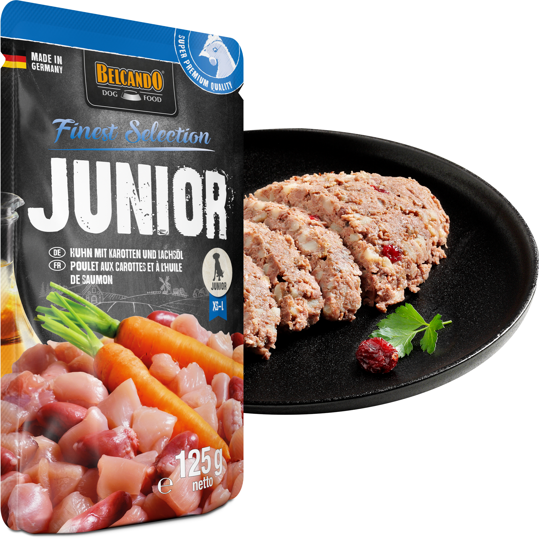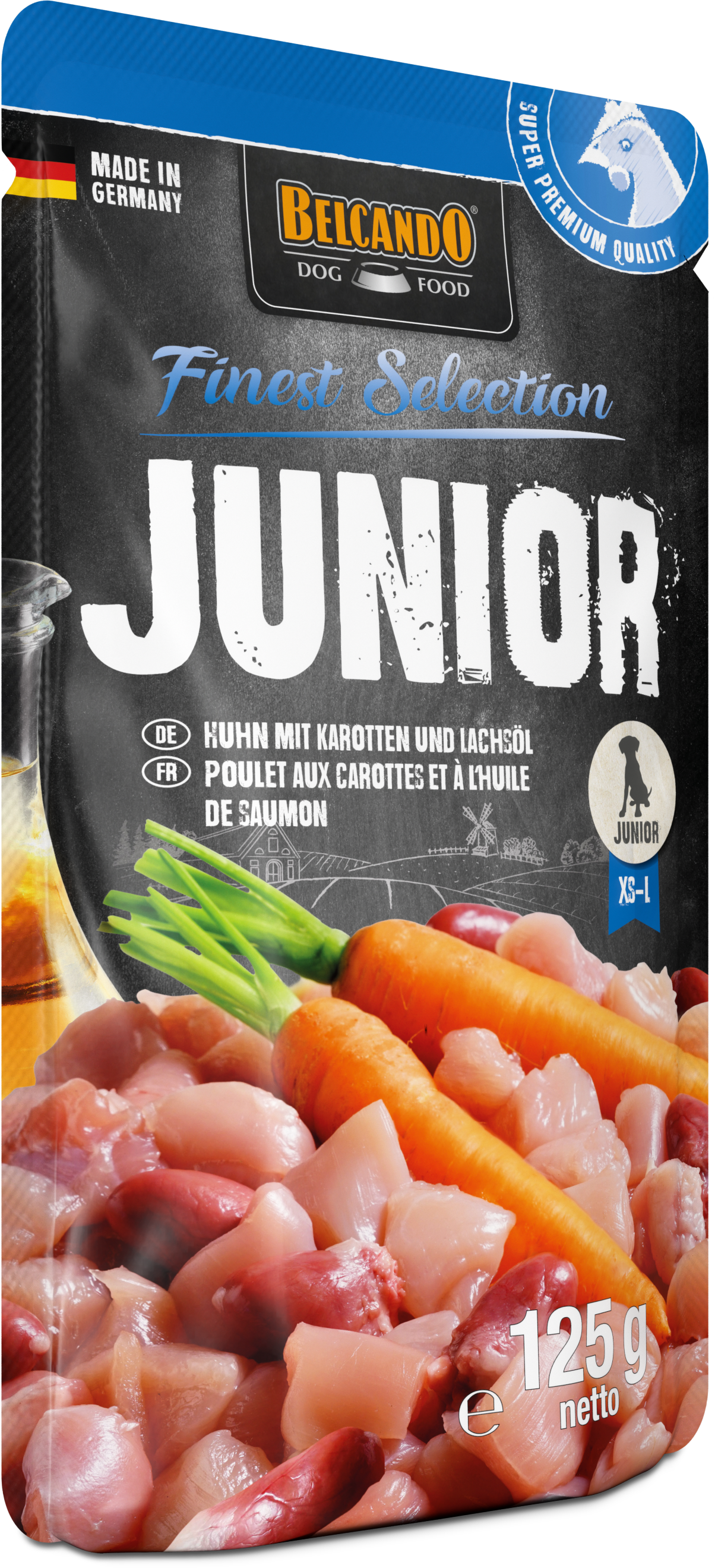 Junior Huhn mit Karotten und Lachsöl