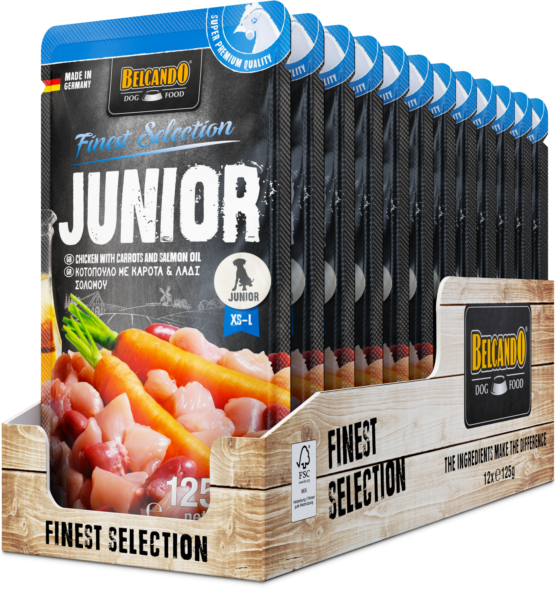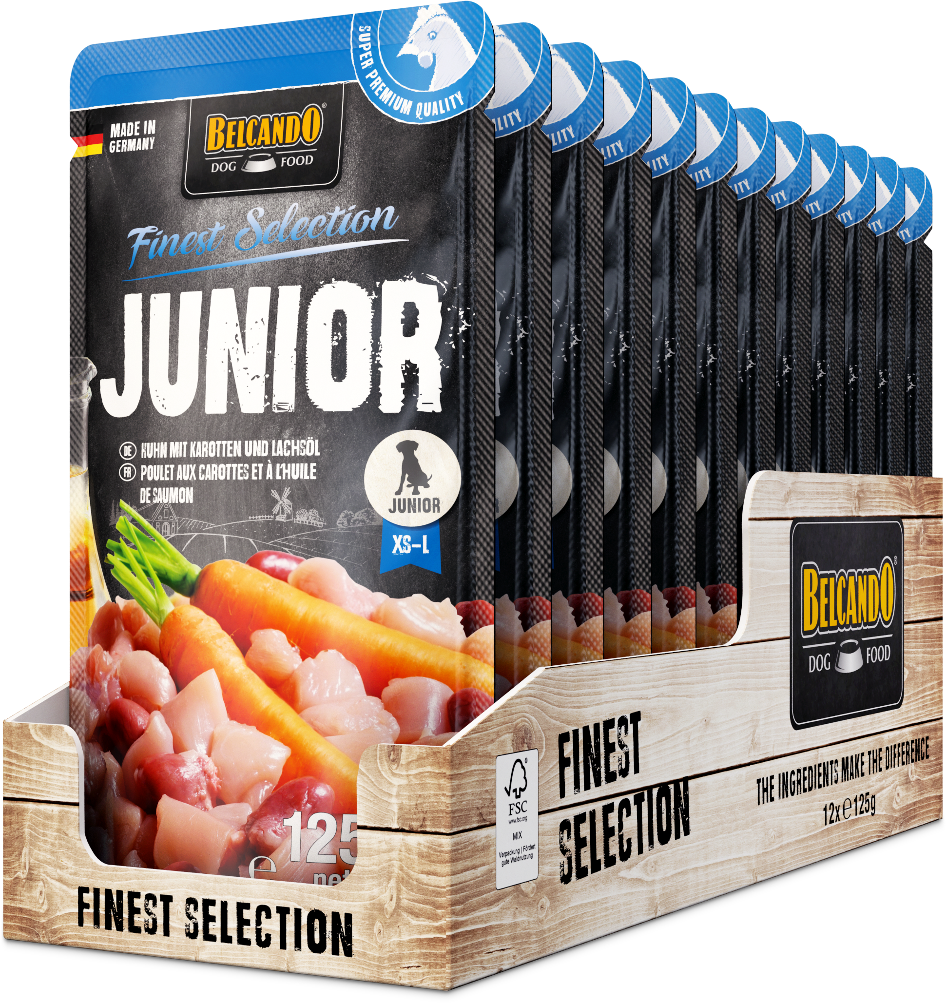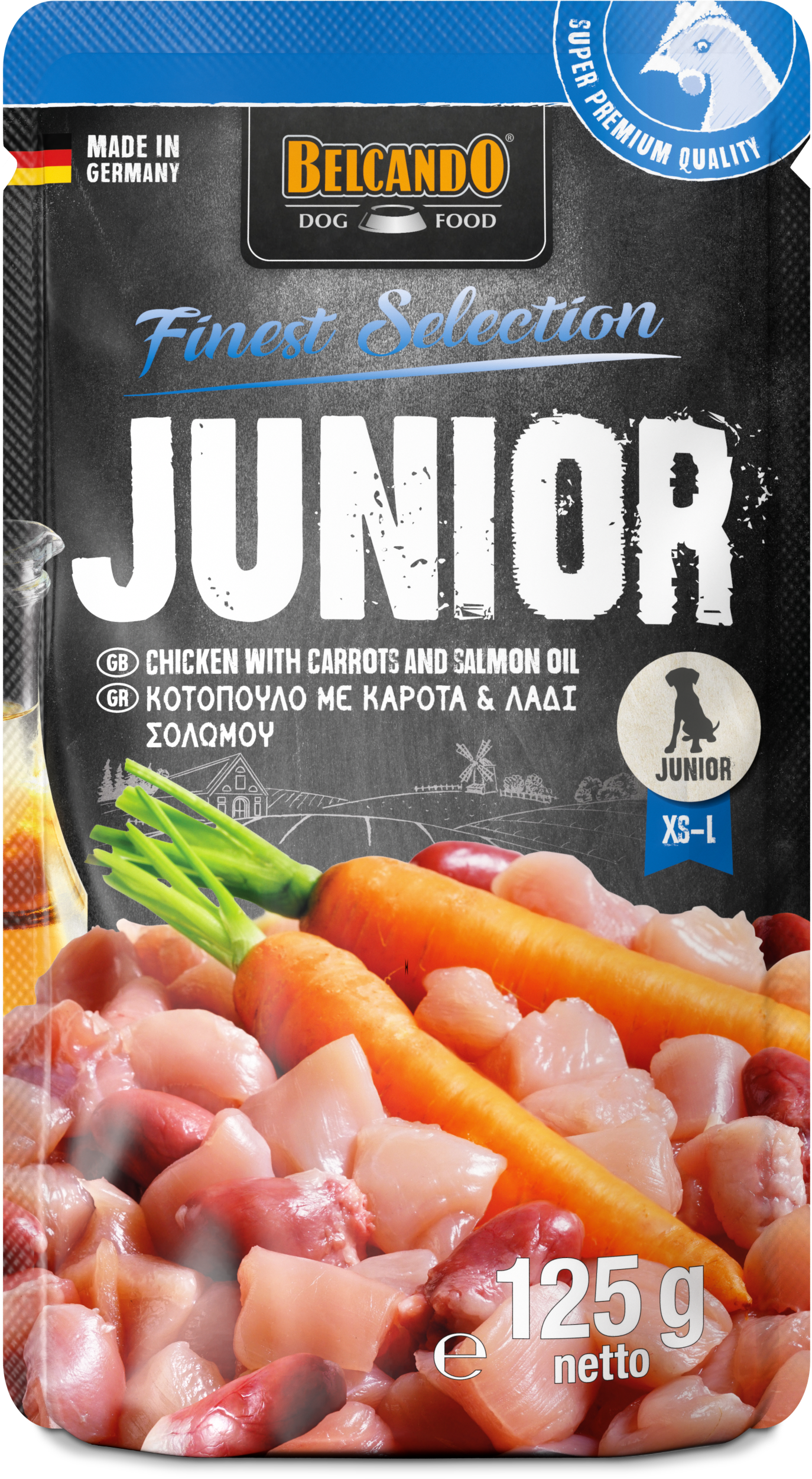 Junior Huhn mit Karotten und Lachsöl